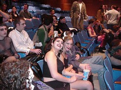 Over the weekend Artspace offered a scifi double-feature. Mimsy Borogroves, one of my downtown correspondents, reports: "Barbarella / Rocky Horror Picture Show drew over 50 people. Three awards were flung out: Best Audience Participator: Tony Reans; Best Time Warper: A young man in a white hat with a cigar, and Best Costume: A pretty young man from Austin named "Hooker." A good time was had by all. Dan Garner announced we'd be doing it every Friday night at midnight. However, he's crazy. He made that up. But we might just have to do it again."